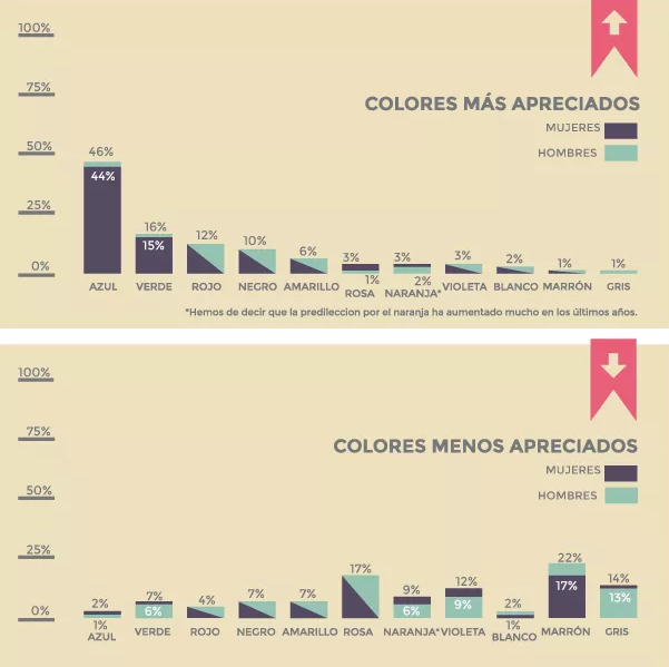 Existen varios estudios que demuestran que los colores son más o menos apreciados dependiendo del sexo de las personas.