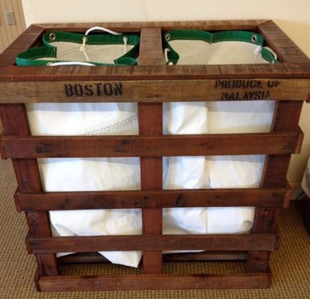 - O aprovecha los pallets y construye un cesto para la ropa sucia.